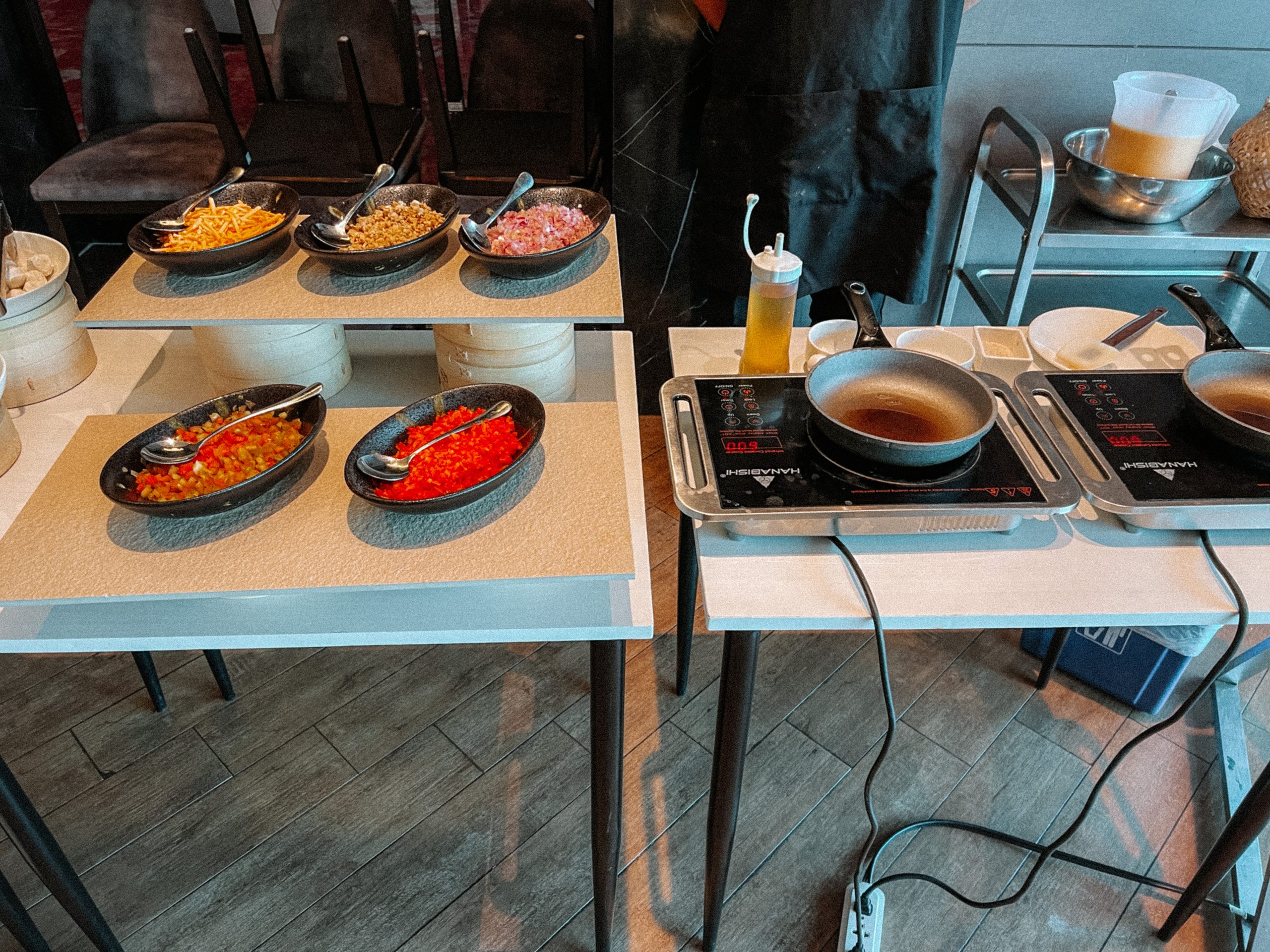 Breakfast was a good spread, featuring Filipino staples, make your own congee, bread and pastries, Filipino delicacies, fresh fruits, cereals, a salad station, and more. I was sad though that there was no bacon. There’s also a live cooking station where guests can order omelet, among others.