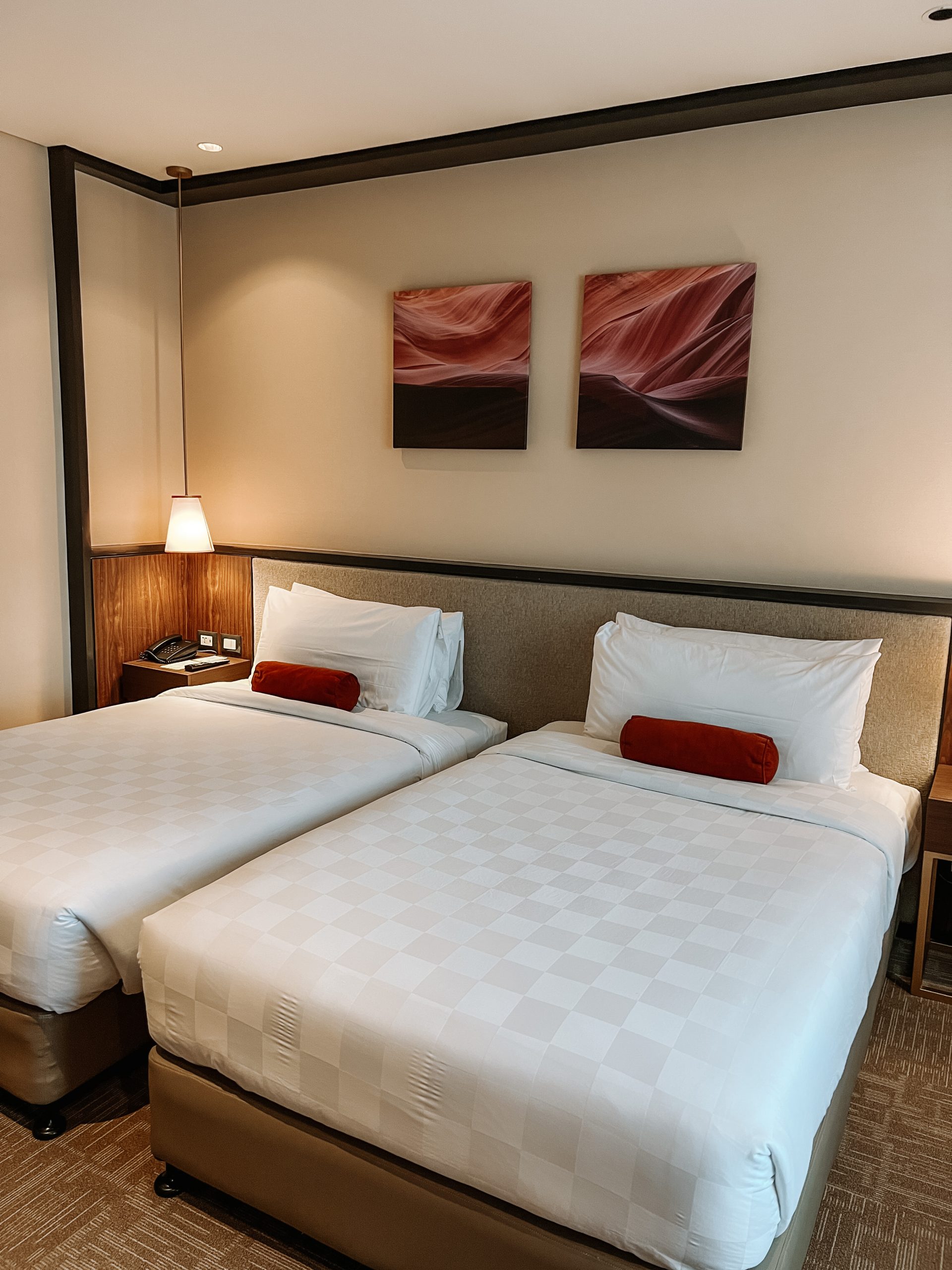 We were billeted at a Deluxe Twin room. Other room types available are Deluxe King, Suite, and One Bedroom Suite. When we entered the 32 sqm. room, Earth colors welcomed us, setting the tone for a refreshing stay.